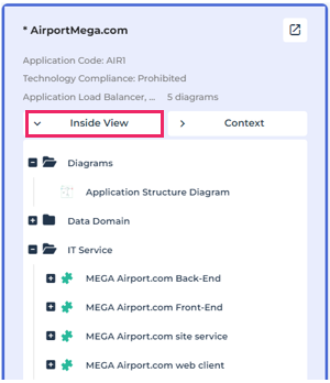 Example: for the *AirportMega.com Application, the end-user can display its Application Structure Diagram in the Edit area, and then drag & drop IT services from the tree into the diagram.