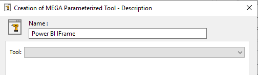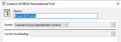 a) In its Behavior section, in the MEGA Parameterized Tool field, click the arrow and select Create MEGA Parameterized Tool.