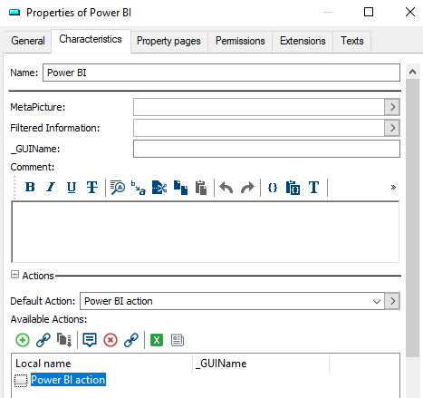 8) Access the “Power BI action” properties: