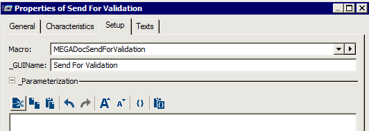 Hopex enables sending of reports (MS Word) for review or validation. This function is accessible via the commands Send for Review and Send for Validation in the report (MS Word) properties dialog box.