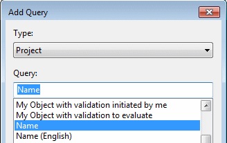 3. Select the object type and the query, for example the "Project" object type and the "Name" query.