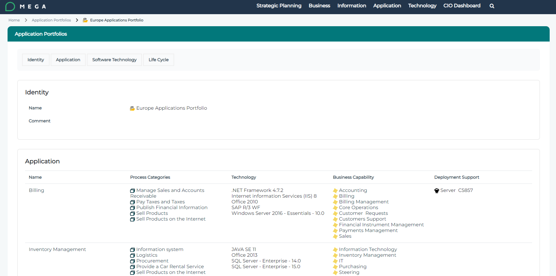 Application supporting the Business Capability