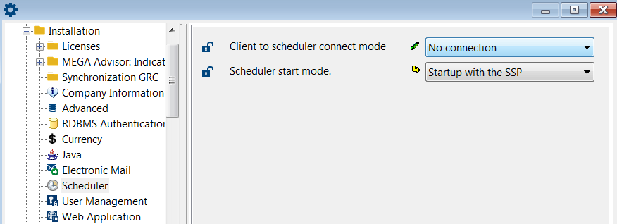 2. In the right pane, set the Client to scheduler connect mode option value to “No connection”.