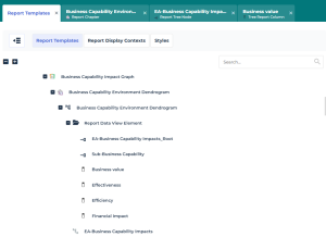 • the Report Templates classified by their sharing characteristics (Private or Public). The Hopex folder includes standard Report Templates.