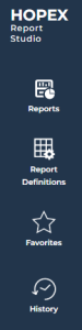 From the Report Definitions navigation menu you can especially access, create and customize the Report Studio related definitions: