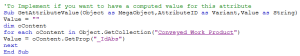 • The "Scenario Flow - Get Content" macro computes the values for the "Content" fields from the "Conveyed Work Product" collection.