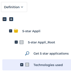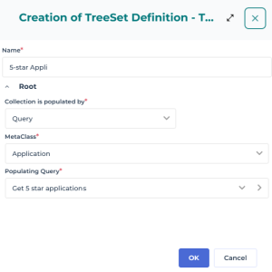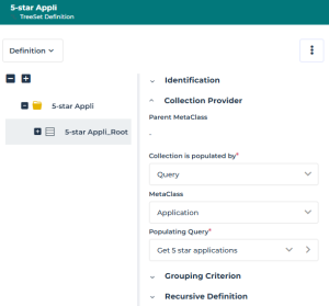 Example: The "5-star Appli" TreeSet Definition is created and includes its root node.