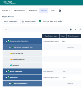 Exemple: the TreeSet includes all of the applications with a 5-star ranking, and for each application its Software Technologies and their corresponding property values.