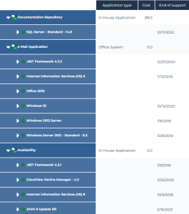 - one TreeSet Property to the "Technologies used" TreeSet Collection: the "End of support" MetaAttribute value of the Technology.