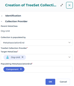 Example: you can add two TreeSet Properties to the "Org-Unit Component" TreeSet Collection: two MetaAttribute values of the Org-Unit Component.