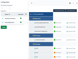 Example: hover the cursor over "Financial Controler", its "Company Standard" and "Internal/External" values are displayed in a pop-up window.