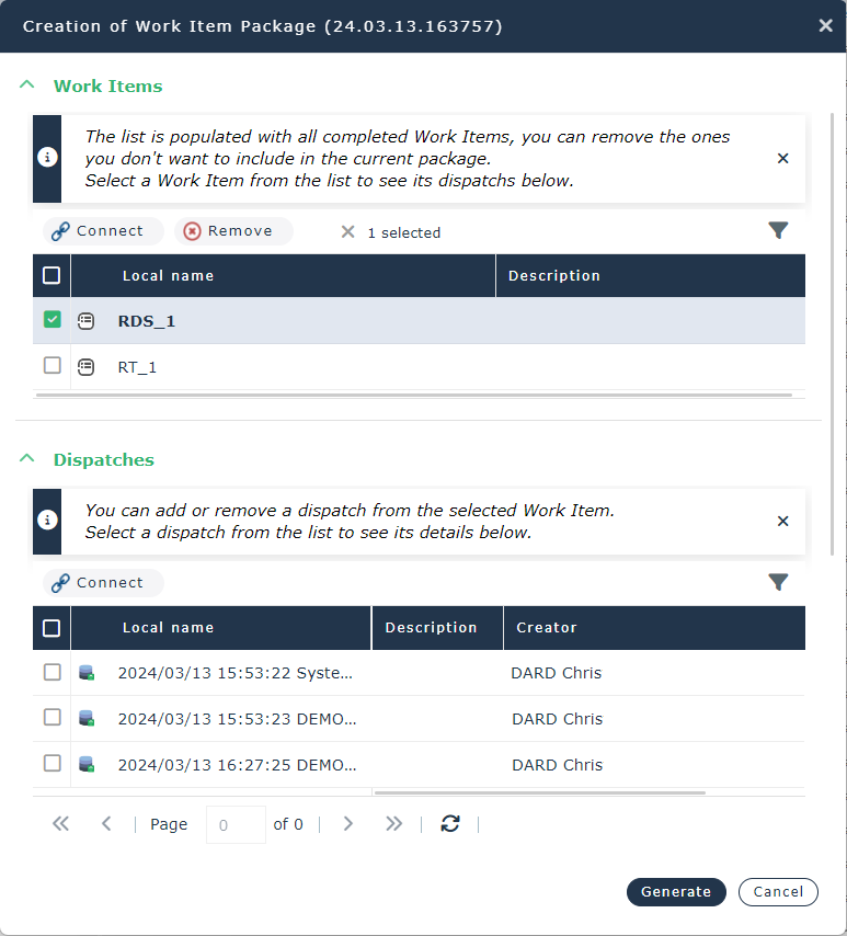 Although it is possible, we do not recommend you amend dispatches or work items selected by default at that stage.