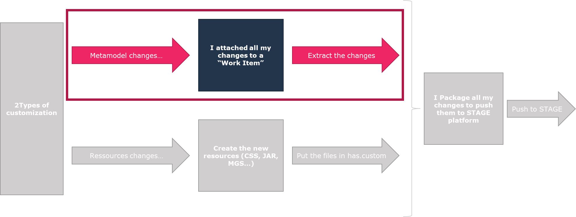 You can generate a group of Work Items to extract your customization in mgr/xmg format.