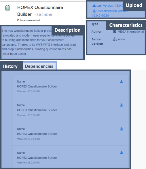 • direct access to its upload (last version and recommended version)