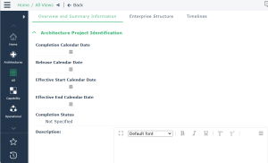This subview includes an Architecture Project Identification card with: