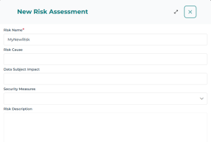 1. In the DPIA Risks on Privacy section, click New to create a risk in one of the tabs corresponding to the different risk types: