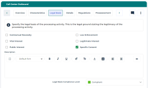 The Privacy team/DPO has to specify a compliance level for each section of a processing activity.