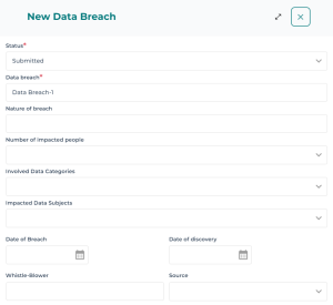 1. From the navigation bar, select Registers > Data Breaches and click New.