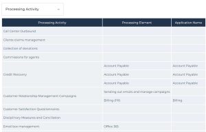 This report contains a list of all IT applications involved in the existing processing activities.