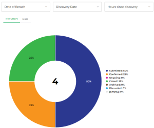 This report displays all data breaches, grouped by status, in order to quickly identify those requiring immediate action.