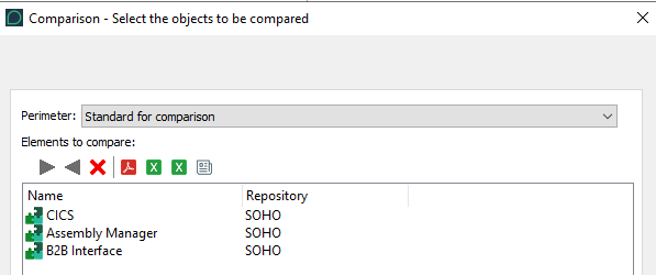 If you have opened the comparison wizard from an object, this object is automatically added in the list of objects to be compared.