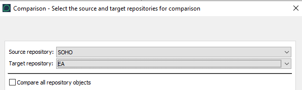 6. (Optional) If required, you can choose to Compare all repository objects.