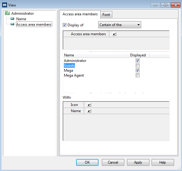 By default, when you create a reading access area, all users belonging to this area are displayed in the diagram reading access area. You can decide to hide certain users in this reading access area.