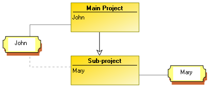 • a writing access area at creation of level "sub-project"