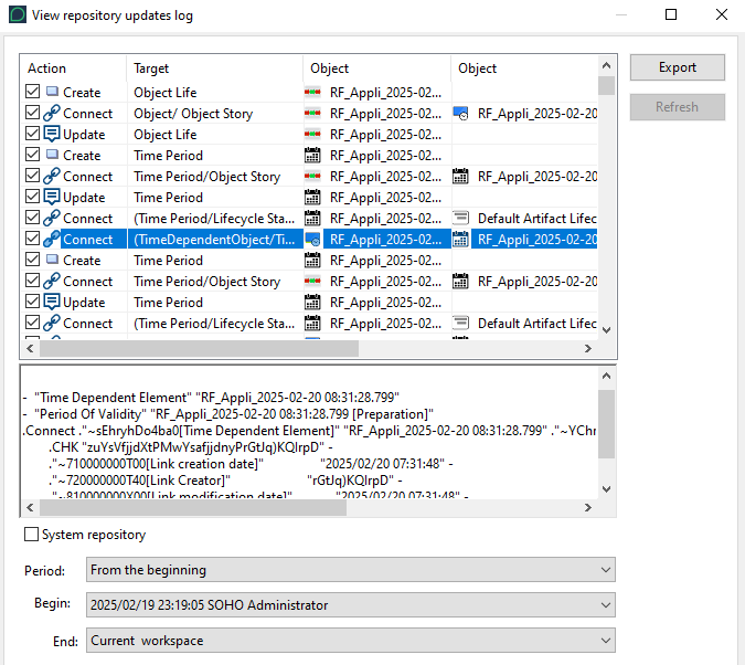 3. Select (/Clear) System Repository to display the system repository (/Hopex repository) updates.