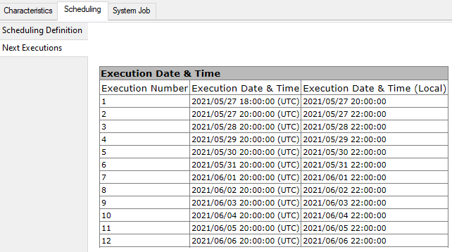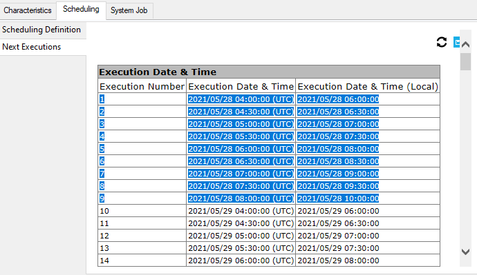 • In the Scheduling tab, select the Next Executions sub-tab.