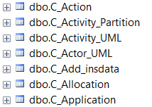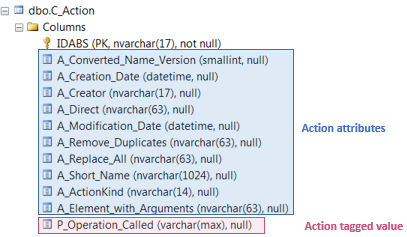 dbo.C_Action table includes in Columns folder all the attributes and tagged values belonging to the Actions.