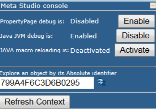 In HOPEX, with the MetaStudio console, in Explore an object by its absolute identifier, enter the 799A4F6C3D6B0295 IdAbs.