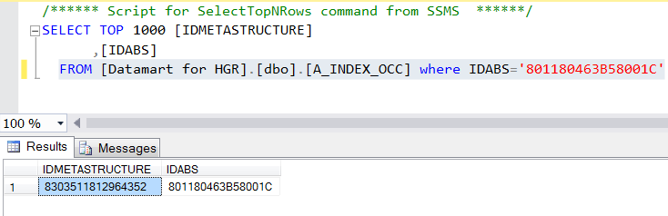 FROM [Datamart for HGR].[dbo].[A_INDEX_OCC] where IDABS='801180463B58001C'