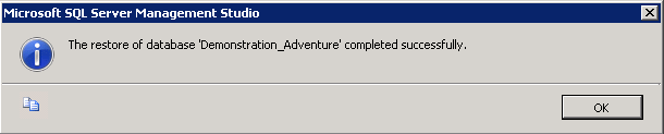 10. Check that the database was fully restored, and click OK.