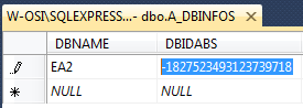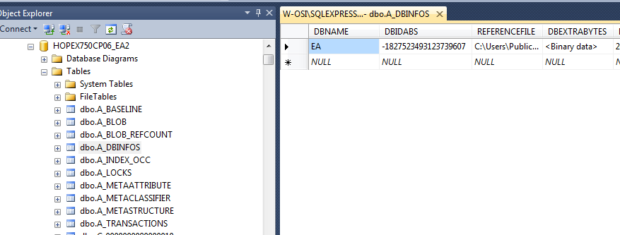 2. Using SQL Server Management Studio, open database “HOPEX750CP06_EA2”, and edit the table “dbo.A_DBINFOS”:
