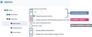 With HOPEX Administration(Windows Front-End) you can prohibit modification of any option at a lower level than your current level.