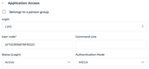 When you select the Belongs to a person group attribute, the person can connect to the application with one of the profiles defined for the group or with one of the profiles assigned to him/her.