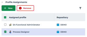 To connect to Hopex, a person must have at least one profile assigned. The profile determines: