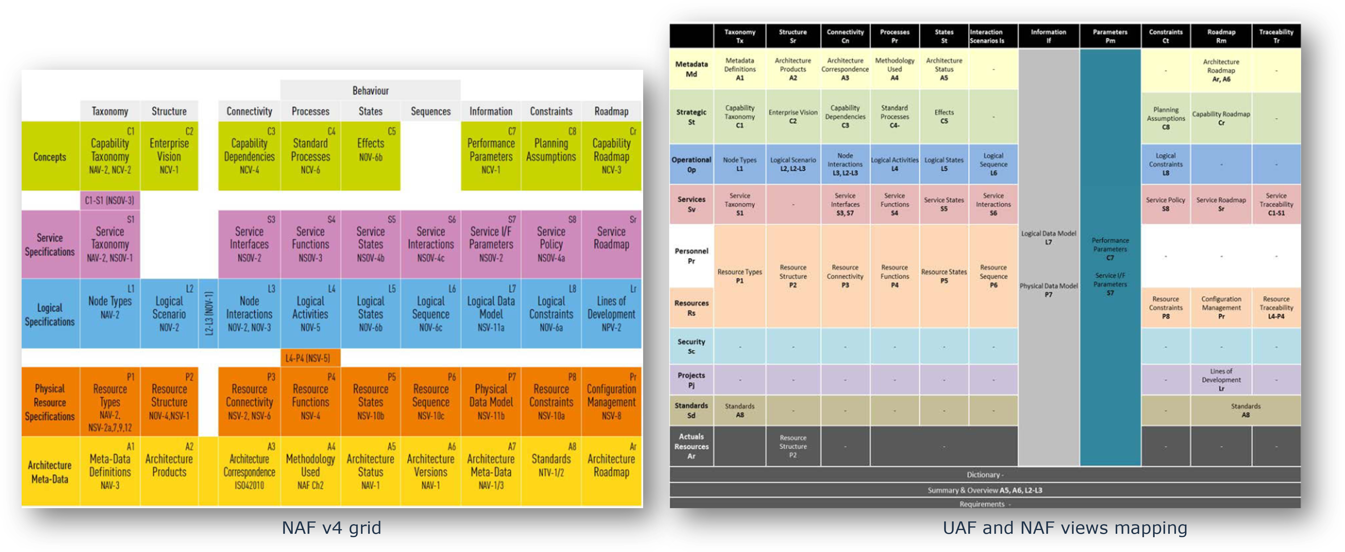 Comparing the both grids, the NAF viewpoints can be mapped to a subset of the UAF viewpoints