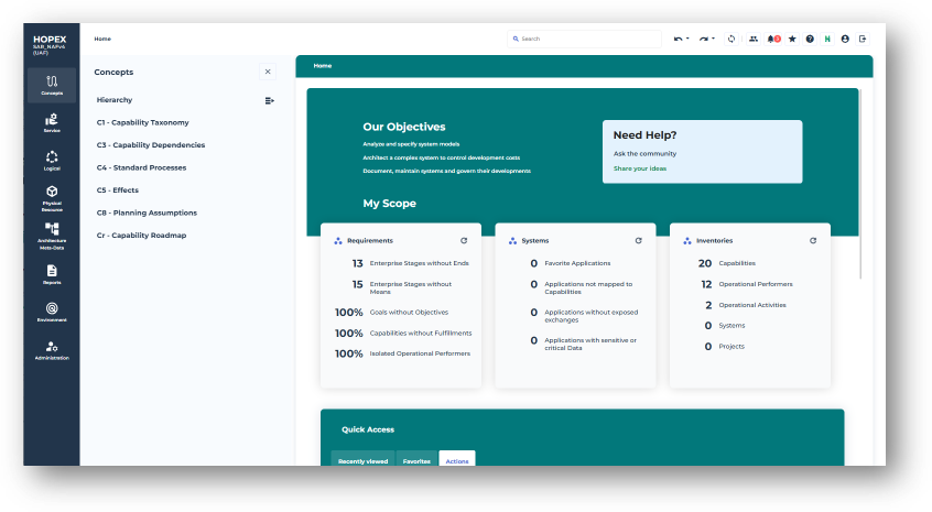 The NAF desktop provided by Hopex UAF