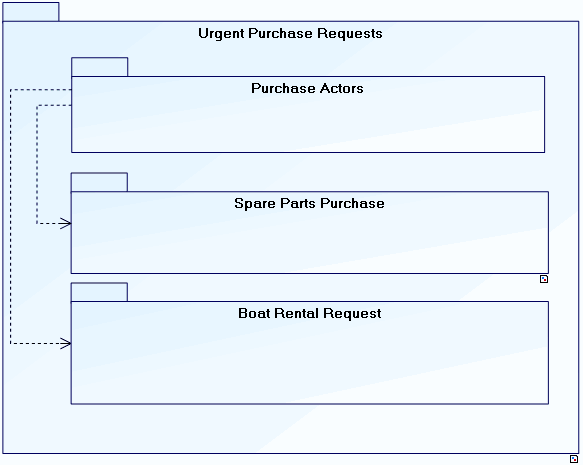 Urgent purchase requests are provided to process purchase of spare parts and boat rental requests. In both of these cases, users are actors of the purchasing domain.