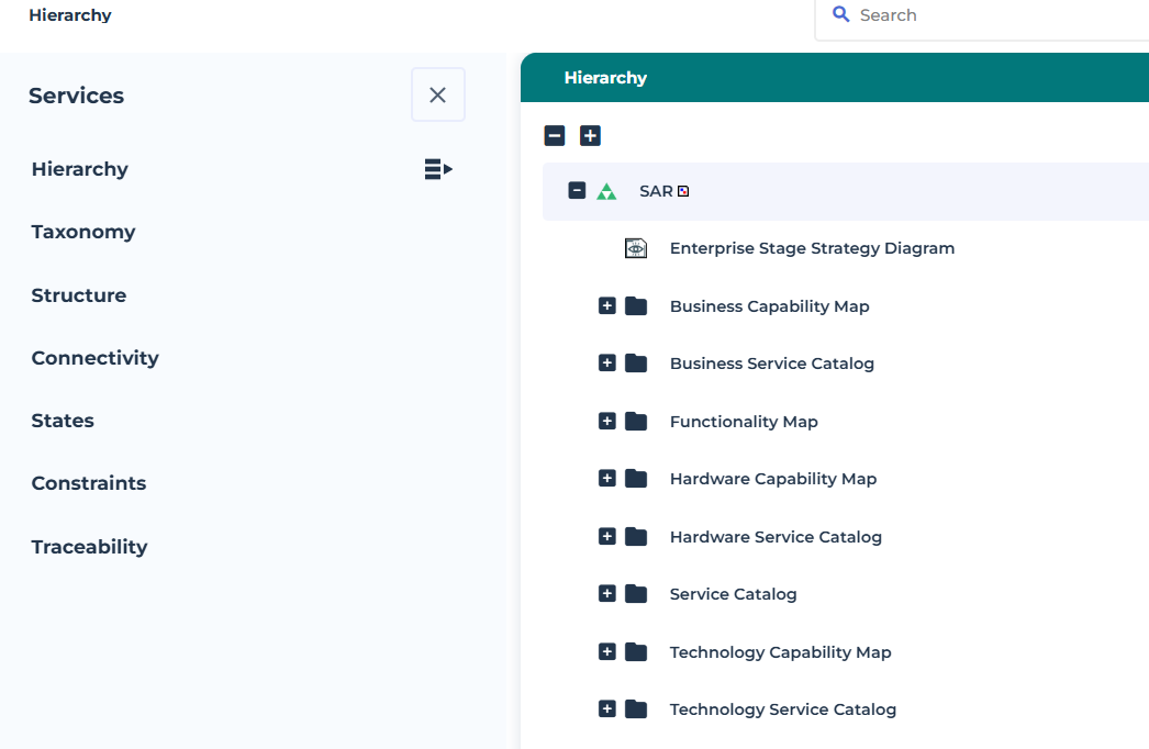 The Hierachy aspect of the Services view helps UAF Architect to manage the links between the services expected by the operational activities and the existing ones.