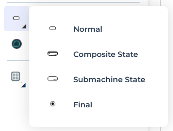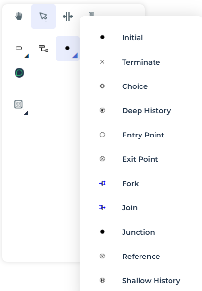 They can be of different types: initial, final, choice, deep history, shallow history, input, output, fork, join, junction or reference.