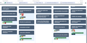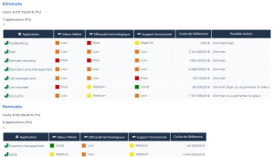 Ce rapport montre la répartition des applications par rapport au métier adressé, aux fonctionnalités couvertes et aux technologies utilisées. Cette présentation permet d'identifier rapidement les applications à faire évoluer.