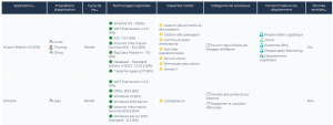 Ce rapport présente sous forme de matrice les caractéristiques fonctionnelles des applications du portefeuille (cycle de vie, technologies associées, capacités métier couvertes, etc.).
