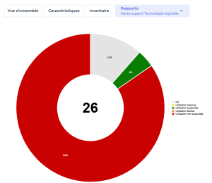 A partir de ces données, des indicateurs et rapports types vous permettent d'analyser les risques d'obsolescence des technologies et les applications concernées.