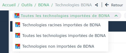 1. Cliquez sur le menu de navigation Outils > Technopedia > Technologies logicielles BDNA.