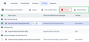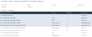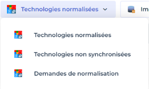 • les technologies normalisées : ce sont toutes les versions importées d'IT-Pedia (versions présentes dans la liste My Products d'IT-Pedia)