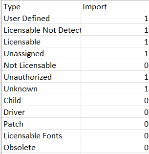 Pour chaque type, entrez 1 pour charger toutes les technologies de ce type dans Hopex, et 0 si vous voulez ignorer les technologies de ce type.