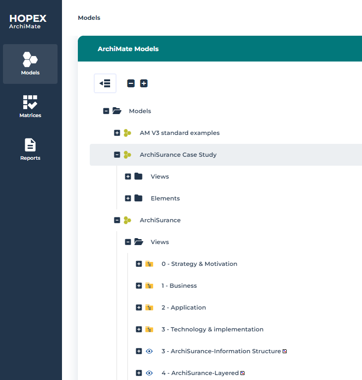 HOPEX for the ArchiMate Framework supports the ArchiMate® standard organization in folders.
